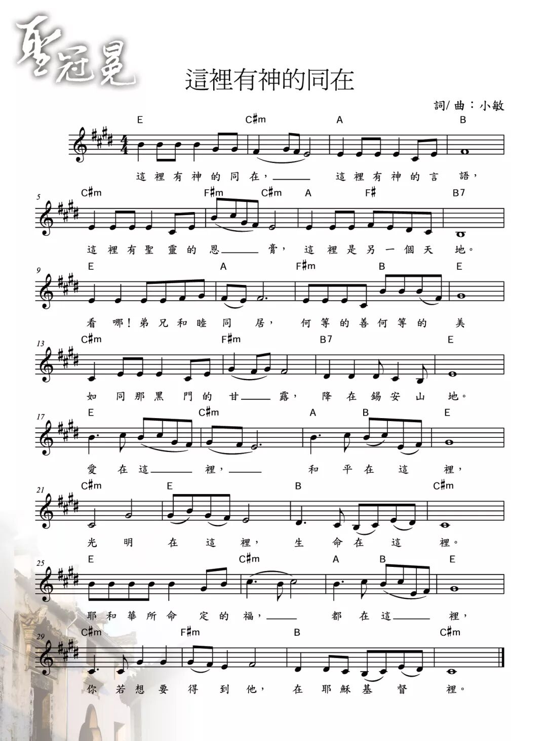 +- 首页 赞美诗歌 正文 音频播放地址: 视频播放地址: 这里有神的同在 噢噢 这里有神的言语 这里有圣灵的恩膏 这里是另一个天地 看哪弟兄和睦同居 何等的善何等的美 如同那黑门的甘露 降在锡安山地 爱在这里 和平在这里 光明在这里 生命在这里 耶和华所命定的福 都在这里 你若想要得到它 在耶稣基督里 歌谱: 赞美诗歌未整理以斯拉盛晓玫祝瑞莲生命河灵粮堂小羊诗歌Jesus Image天韵合唱团新酒使命团我心旋律JLSS BlessedThe Hope佳音 收藏 分享 链接