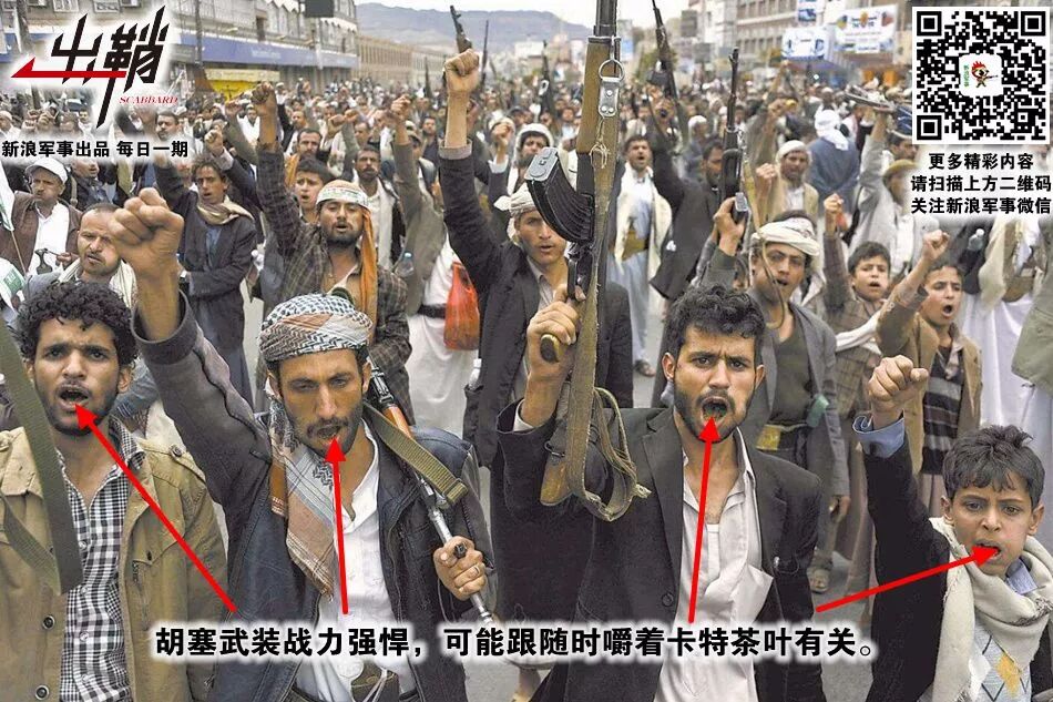 据说,胡塞武装战力如此强悍,与他们擅嚼“卡特”有关。卡特是也门当地盛产的一种低烈度毒品植物,目前在也门72%的男性和33%的女性每天都在嚼卡特,农民们在嚼卡特上的花费甚至占到收入一半。卡特茶贡献了也门6%的国内生产总值以及14%的就业岗位。茶叶开支占到家庭预算的10%,从而影响了基本的食物、教育和健康方面的开支。这种茶叶需要大量水灌溉,这进一步消耗了也门原本贫乏的水资源,此外种过卡特的土地也难以再种植小麦等粮食作物。