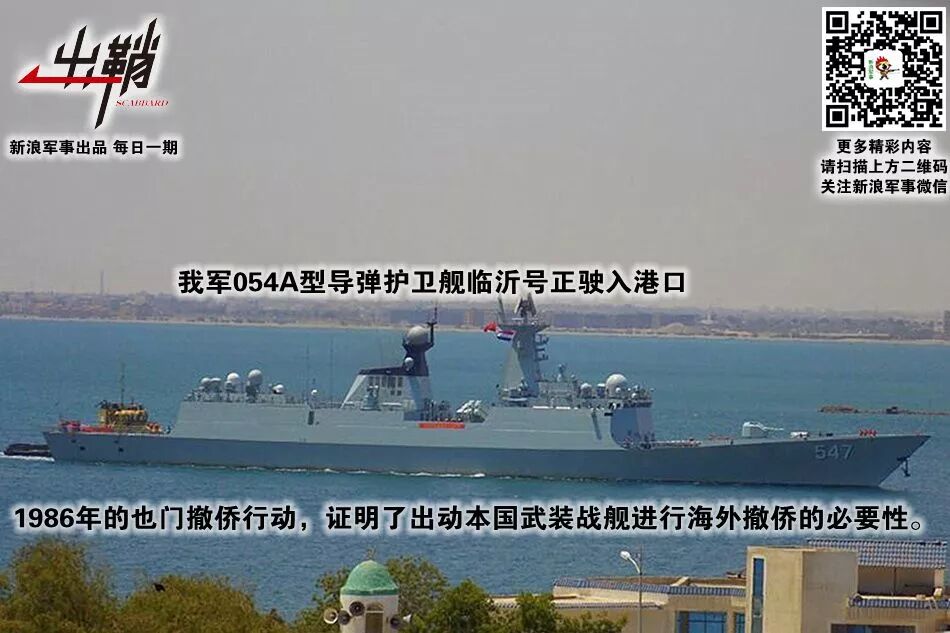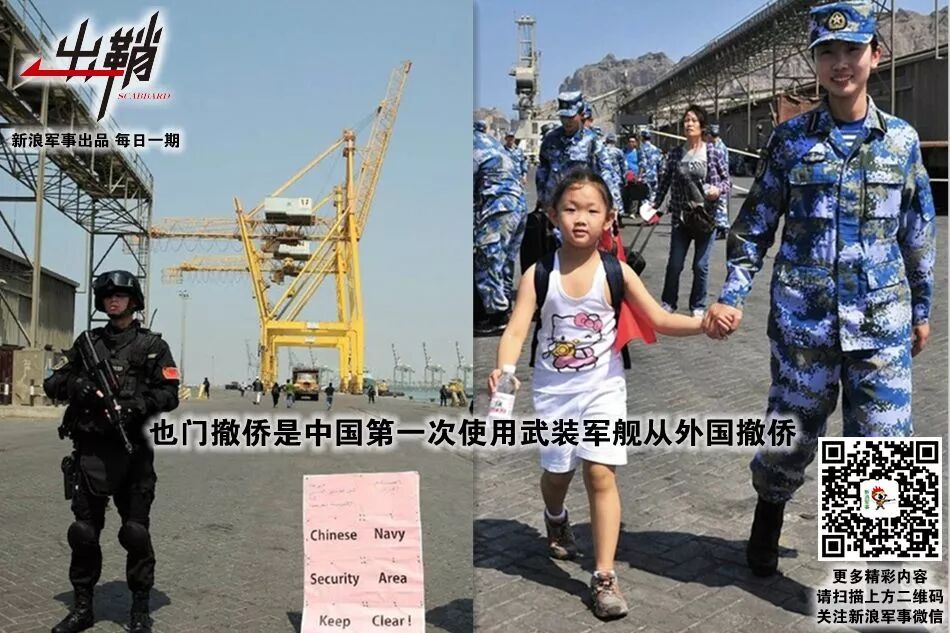 也门近几年进入中国民众的视野,还是在2015年的我军也门撤侨行动中。当时中国派遣第十九批护航舰艇编队临沂舰、潍坊舰、微山湖舰赶赴也门执行撤侨任务。临沂舰靠岸后便进入一级战斗部署,舰体右舷的7管30毫米速射近防炮随时准备开火。与此同时,全副武装的蛟龙突击队队员也迅速出动,控制了港口附近区域,并树立起英文警告标示。也门撤侨行动,是中国第一次使用武装军舰从外国撤侨,并且有武装人员携带武器离舰登岸设立安全区,标志着中国海军开始走向全球作战。之前热播的电影《红海行动》便是以也门撤侨事件作为背景。