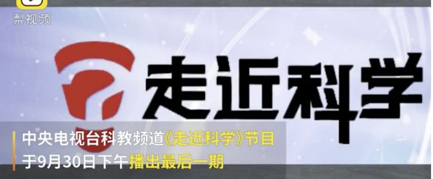 9月30日,《走近科学》播出最后一期,网友纷纷怀念。这一节目于1998年6月1日开播,是央视首个大型科普栏目。每期节目由一条新闻线索引出,讲述背后的科学问题,通过影像和声音增加紧张感,渲染悬疑气氛,引爆观众好奇心。(梨视频)