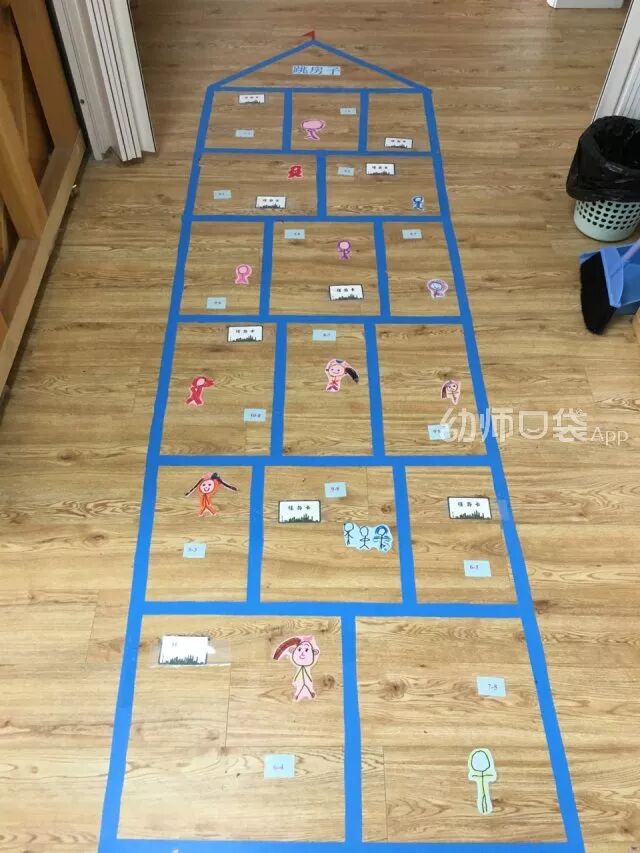 在幼儿园里,利用走廊的地面就可以玩起来。