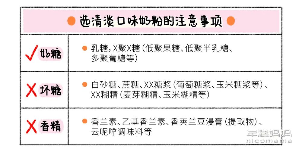 总的来说,如果想要挑口味清淡的奶粉,那就尽量选择配方表里没有白砂糖、葡萄糖,也没有XX糖浆、XX糊精的奶粉,另外也最好避开各种香精。不过,乳糖、X聚X糖这样的是好糖,别一棍子都打死哦。
