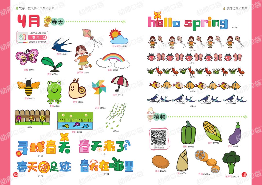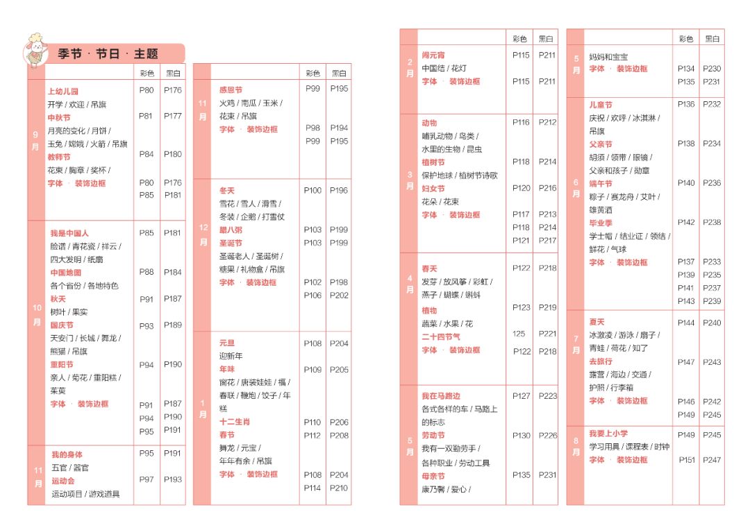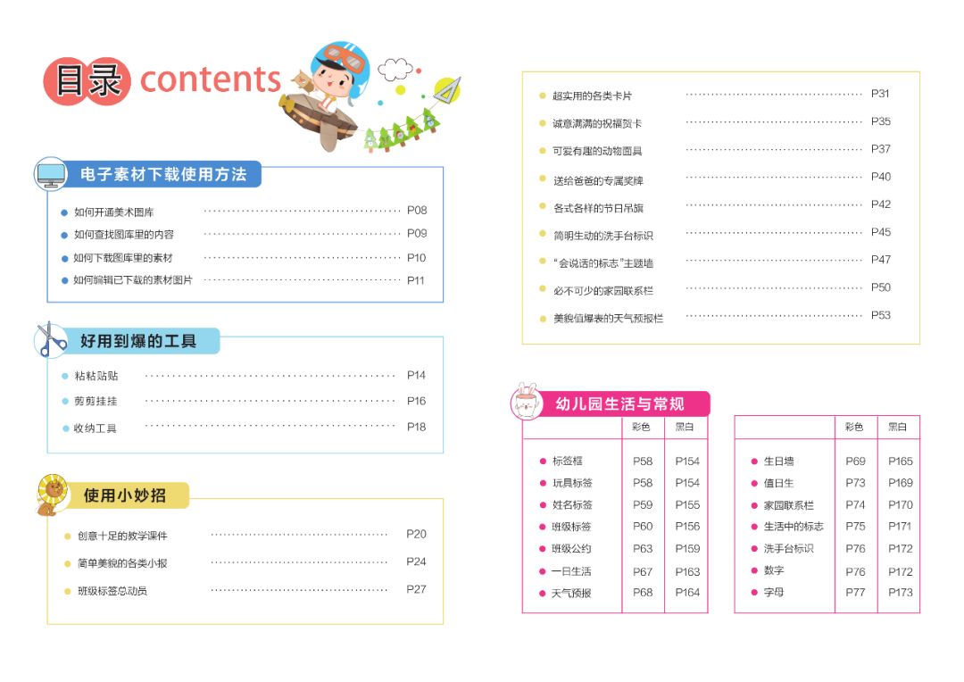 这是一本图片目录册,能让你随时翻阅找灵感。还包含了下载方法、工具推荐与使用妙招,贴心指导新老师变身环创小能手。