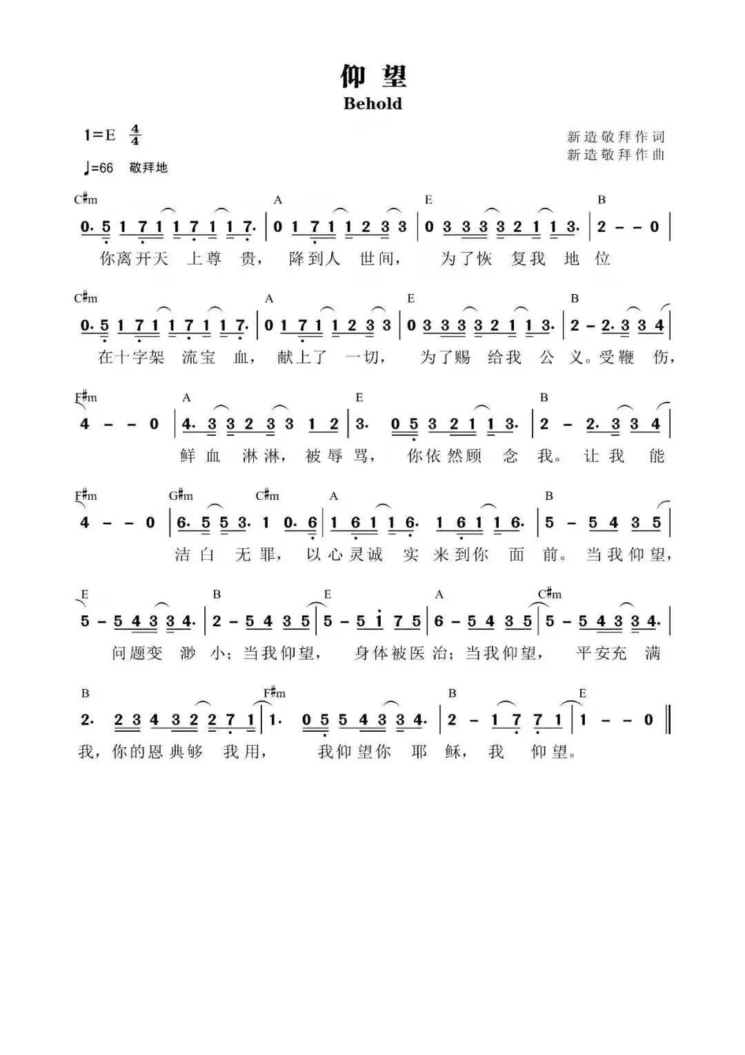 你离开天上尊贵 You left heaven's glory 降到人世间 Descended to earth 为了恢复我地位 To restore my position in Christ 在十字架流宝血 Shed Your precious blood on the cross 献上了一切 Sacrificed Your all 为了赐给我公义 To make me righteous 受鞭伤 Beaten, striped 鲜血淋淋 Covered in blood 被辱骂 Insulted, reviled 你依然顾念我 Yet You still cared for me 让我能 That I might be 洁白无罪 Spotless and blameless 以心灵诚实 来到你面前 With a sincere heart, I come before You 当我仰望 As I behold 问题变渺小 My problems become smaller 当我仰望 As I behold 身体被医治 My body is healed 当我仰望 As I behold 平安充满我 Peace fills me 你的恩典够我用 Your grace is sufficient for me 我仰望你耶稣 I behold You, Jesus 我仰望 I behold You 我仰望 I behold You 定睛注目着你 Set my eyes upon You 我的救主 My Saviour 我的耶稣 My Jesus 你的恩典够我用 Your grace is sufficient for me 我仰望 I behold You