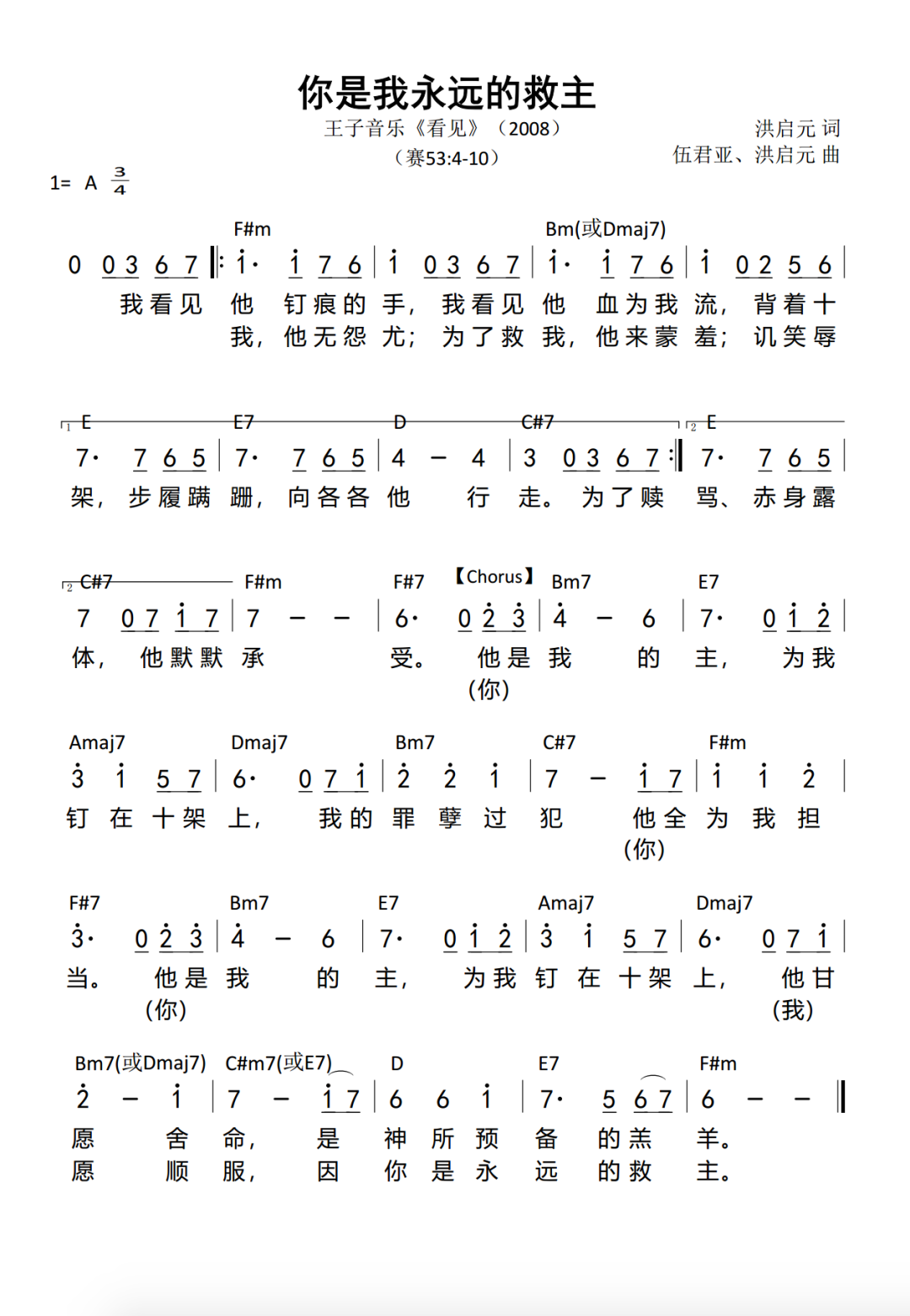 +- 首页 赞美诗歌 正文 音频播放地址: 视频播放地址: 我看见祂 钉痕的手 我看见祂 血为我流 背着十架 步履蹒跚 向各各他行走 为了赎我 祂无怨尤 为了救我 祂来蒙羞 讥笑辱骂 赤身露体 祂默默承受 祂是我的主 为我钉在十架上 我的罪孽过犯 祂全为我担当 祂是我的主 为我钉在十架上 祂甘愿舍命 是神所预备的羔羊 祢是我的主 为我钉在十架上 我的罪孽过犯 祢全为我担当 祢是我的主 为我钉在十架上 我甘愿顺服 因祢是永远的救主 歌谱: 赞美诗歌未整理以斯拉盛晓玫祝瑞莲生命河灵粮堂小羊诗歌Jesus Image天韵合唱团新酒使命团我心旋律JLSS BlessedThe Hope佳音 收藏 分享 链接
