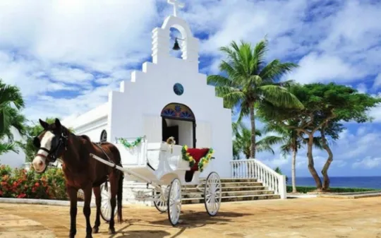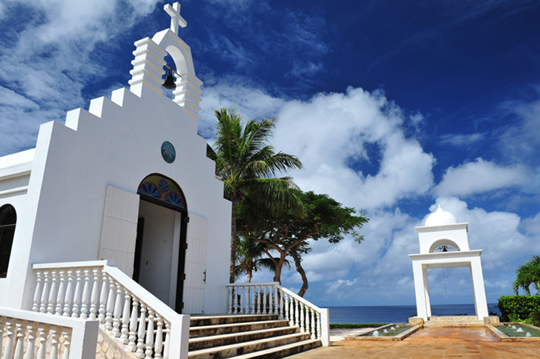 塞班岛卡梅尔山天主教大教堂卡梅尔山天主教大教堂是一座纯白色的教堂,白色的爱,正是属于新人最好的爱。教堂伫立在碧海蓝天间的高地上,你可以远眺宽阔的海洋,在蓝天映衬下的教堂格外的美好。教堂内部非常的深,庭园中种满了各式艳丽的花卉。礼堂外的海景婚钟堂,有世界上最美的婚钟堂之称。