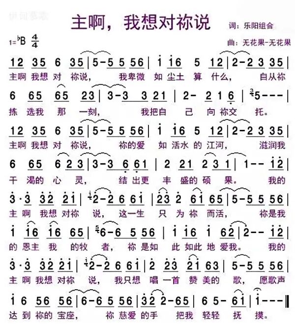 《主啊,我想对祢说》 作词:乐阳组合 作曲:无花果-无花果 编曲:无花果-无花果 演唱:张路得 主啊我想对祢说 我卑微如尘土算什么 自从祢拣选我那一刻 我把自己向祢交托 主啊我想对祢说 祢的爱如活水的江河 滋润我干渴的心灵 结出更丰盛的硕果 我的主啊,我想对祢说 这一生只为祢而活 祢是我的恩主我的牧者 祢是如此如此的爱我 我的主啊,我想对祢说 我只想唱一首赞美的歌 愿歌声达到祢的宝座 祢慈爱的手把我轻轻抚摸 间奏 主啊我想对祢说 我卑微如尘土算什么 自从祢拣选我那一刻 我把自己向祢交托 主啊我想对祢说 祢的爱如活水的江河 滋润我干渴的心灵 结出更丰盛的硕果 我的主啊,我想对祢说 这一生只为祢而活 祢是我的恩主我的牧者 祢是如此如此的爱我 我的主啊,我想对祢说 我只想唱一首赞美的歌 愿歌声达到祢的宝座 祢慈爱的手把我轻轻抚摸 我的主啊,我想对祢说 这一生只为祢而活 祢是我的恩主我的牧者 祢是如此如此的爱我 我的主啊,我想对祢说 我只想唱一首赞美的歌 愿歌声达到祢的宝座 祢慈爱的手把我轻轻抚摸