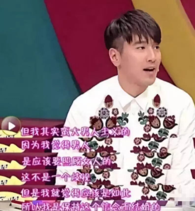 男人就是应该照顾女人的,这不是一个歧视,而是我觉得本该如此。我是保持这个信念结婚的。