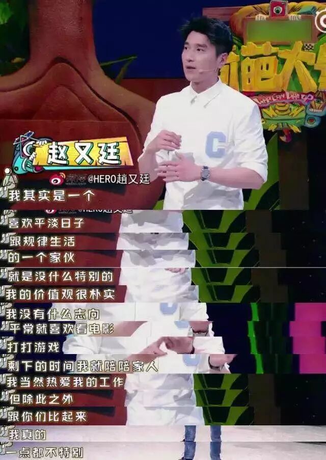 简单来说,赵又廷就是一个生活规律和平淡的理工宅男。他可以一周不出门,没事打打游戏自娱自乐。