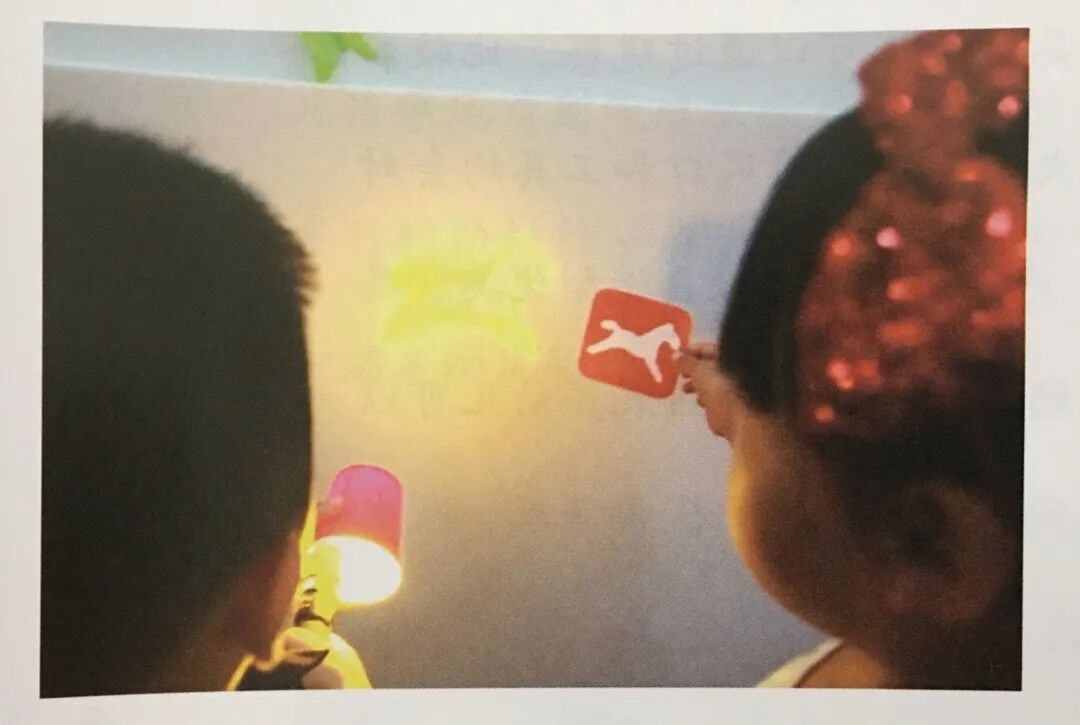 根据照出的轮廓图找到相应的图卡;也可以根据图卡找相应的纸杯找到后用手电筒照一照,证实猜测。两人游戏的时候,可以比一比谁找得快。