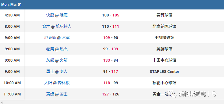 3月1日NBA赛果