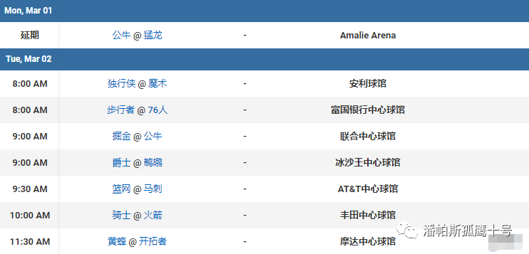 3月2日NBA赛程