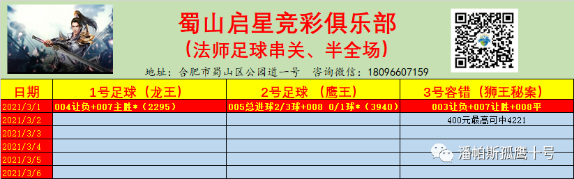 003让负+007让胜+008平局 *(内部方案-公示至3月5日)