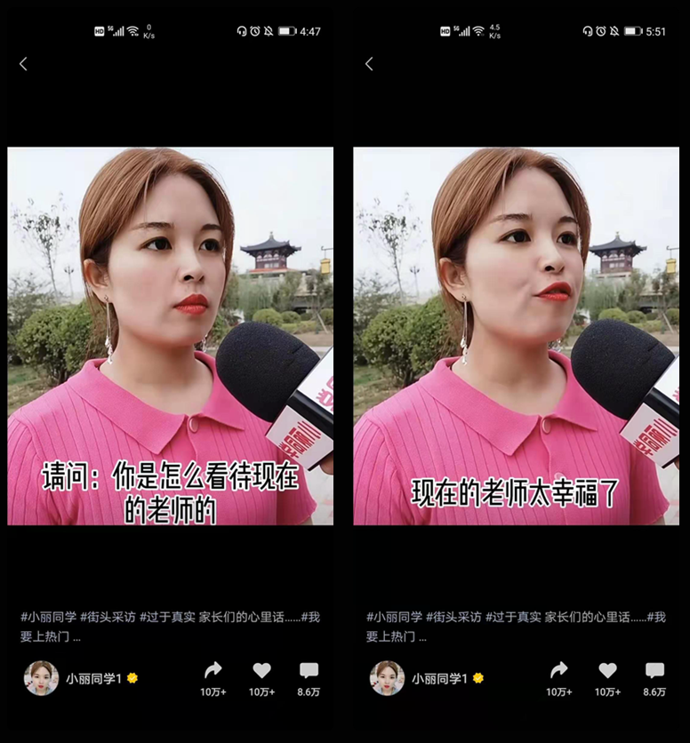 以其最新获得10W+赞的作品为例,视频主人公@小丽同学以接受采访的形式疯狂吐槽现代老师的一些做法。
