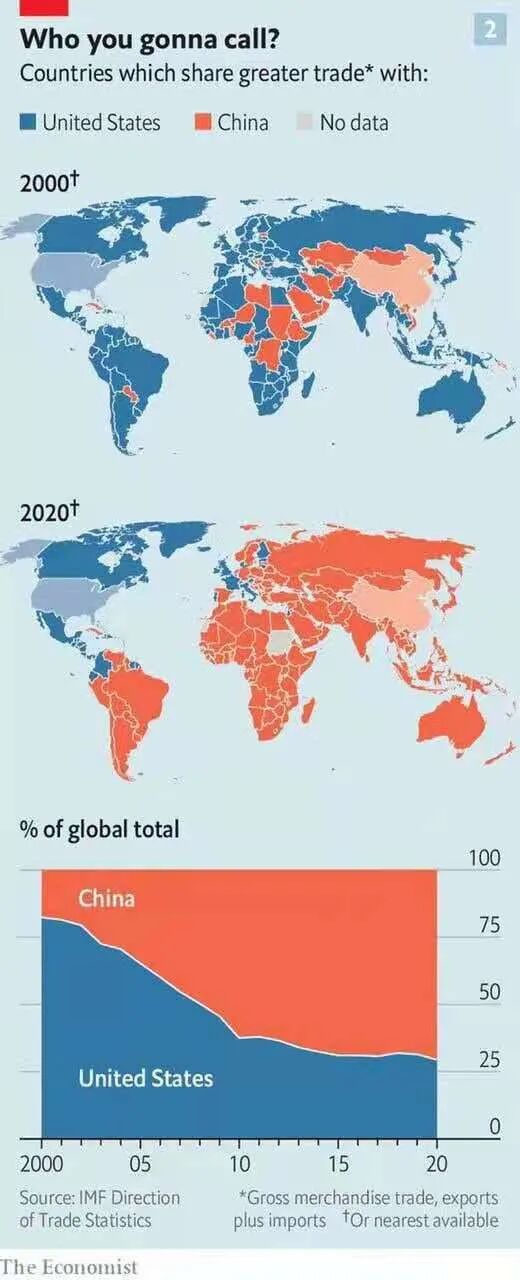 2000年,全球约80%的国家,其最大贸易伙伴是美国。