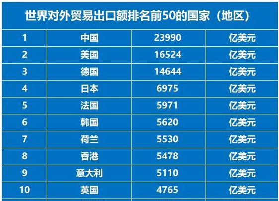 看看那些在全球贸易上排名前五的国家,中国遥遥领先,美、德、日、法都被中国抛在身后。