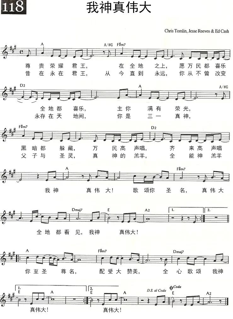 +- 首页 FRCC幕主音乐 正文 音频播放地址: 视频播放地址: 我神真伟大 尊贵荣耀君王 在全地之上 愿万民都喜乐 全地都喜乐 主你满有荣光 黑暗都躲藏 万民高声唱 齐来高声唱 我神 真伟大 歌颂你圣名 真伟大 全地都看见 我神 真伟大 昔在永在君王 从今直到永远 你从不曾改变 永存在天地间 你是三一真神 父子与圣灵 真神的羔羊 全能神羔羊 你至圣尊名 配受大赞美 全心歌颂 我神 真伟大 你至圣尊名 配受大赞美 全心歌颂 我神 真伟大 英语韩语日语版本: 我神真伟大歌谱: 你真伟大歌谱: 黄友闻FRCC幕主音乐 赞美之门 收藏 分享 链接