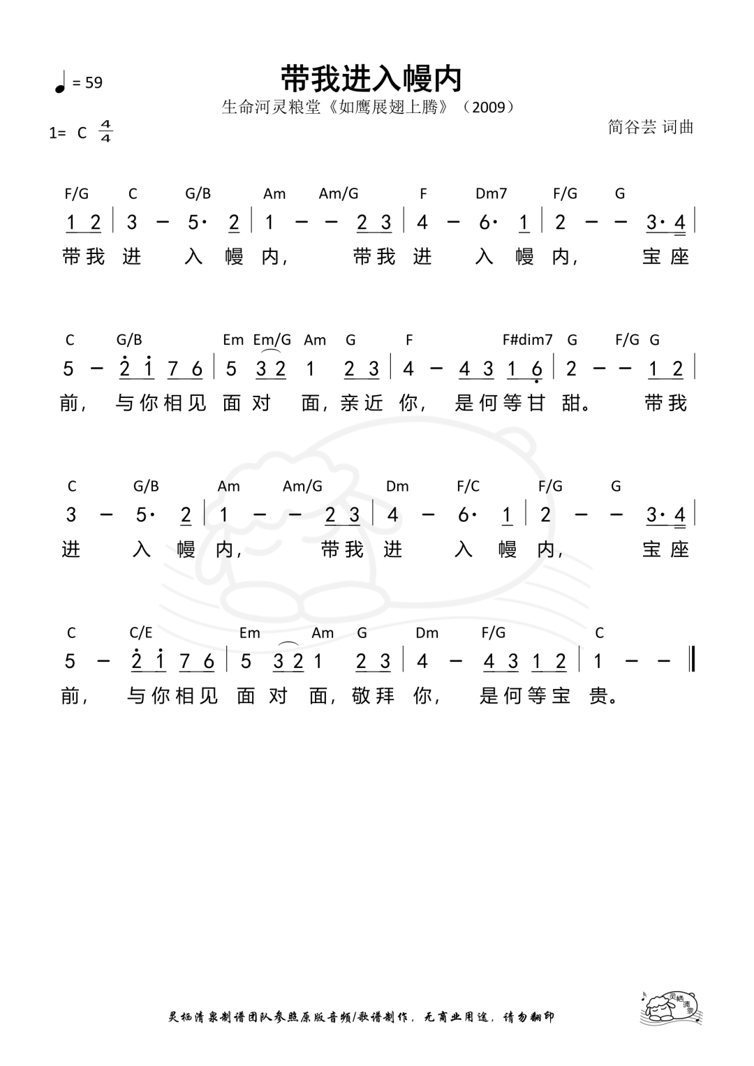 +- 首页 未整理 正文 带我进入幔内 ©️ 生命河灵粮堂 歌名 | 带我进入幔内 Artist | 生命河灵粮堂 专辑 | 《如鹰展翅上腾 》(2009) 词曲 | 简谷芸 歌词 【Verse】 带我进入幔内 带我进入幔内 宝座前 与你相见面对面 亲近你 是何等甘甜 带我进入幔内 带我进入幔内 宝座前 与你相见面对面 敬拜你 是何等宝贵 请支持生命河灵粮堂:www.rolcc.net/rolcc/online-offerings 赞美诗歌未整理以斯拉盛晓玫祝瑞莲生命河灵粮堂小羊诗歌Jesus Image天韵合唱团新酒使命团我心旋律JLSS BlessedThe Hope佳音 赞美之门 收藏 分享 链接