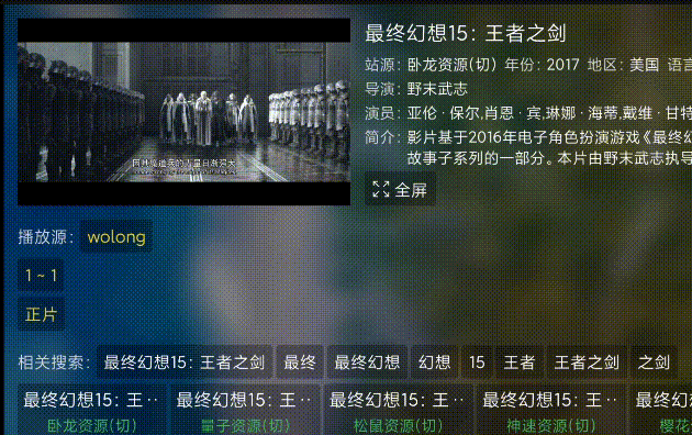 实测,卧龙资源(站源)也可以使用,以下是无删减帧gif演示。