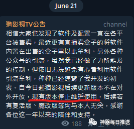 1、今天早上,猫影视TV的开发者发布公告,宣告关停猫影视TV,开发者给出的原因是有人内置到电视盒子贩卖牟利;另外,就是影响太大了,怕对开发者不利;
