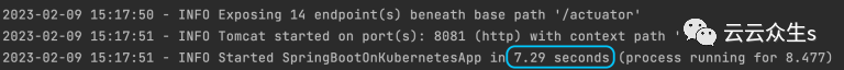 这一切让我得出了今天的第一个建议—A—不要将你的 limit 设置得太低。即使您设置了 CPU limit ,也不应该影响您的应用程序。例如,您可能知道,即使您的 Java 应用程序在正常工作中不会消耗太多 CPU,但它需要大量 CPU 才能快速启动。对于我在 Kubernetes 上连接 MongoDB 的简单 Spring Boot 应用程序,无限制和甚至 0.5 核之间的差异是显着的。通常它在 10 秒以下开始: