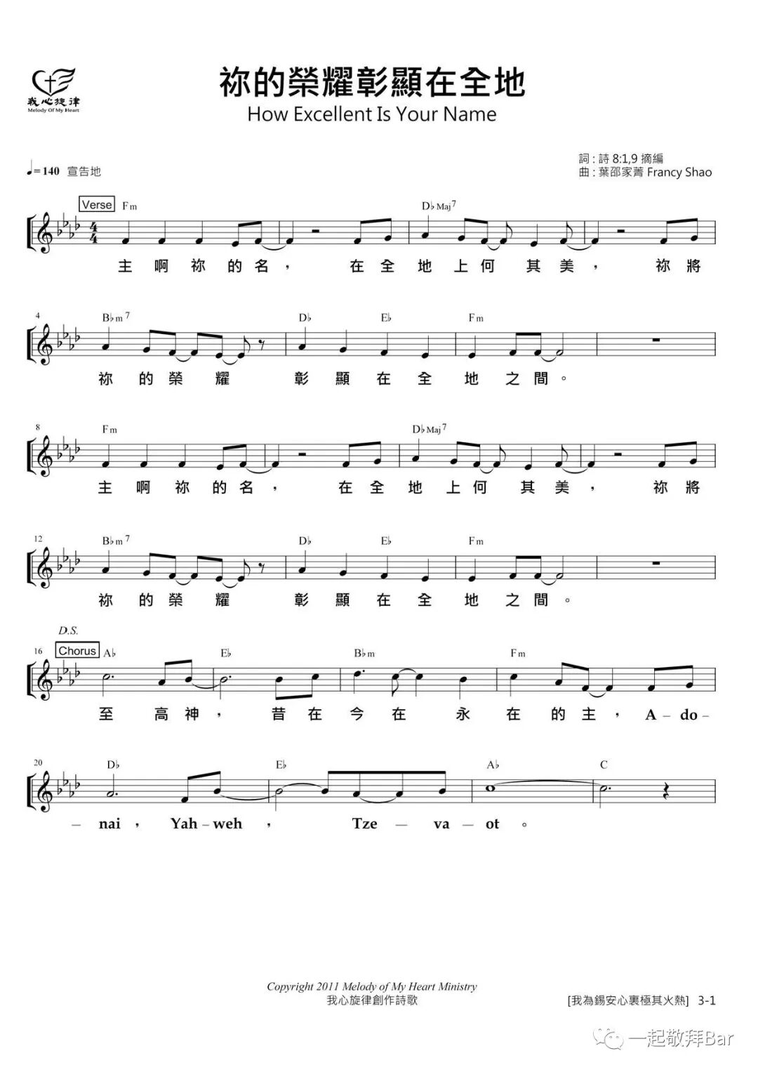 你的荣耀彰显在全地/ How Excellent Is Your Name