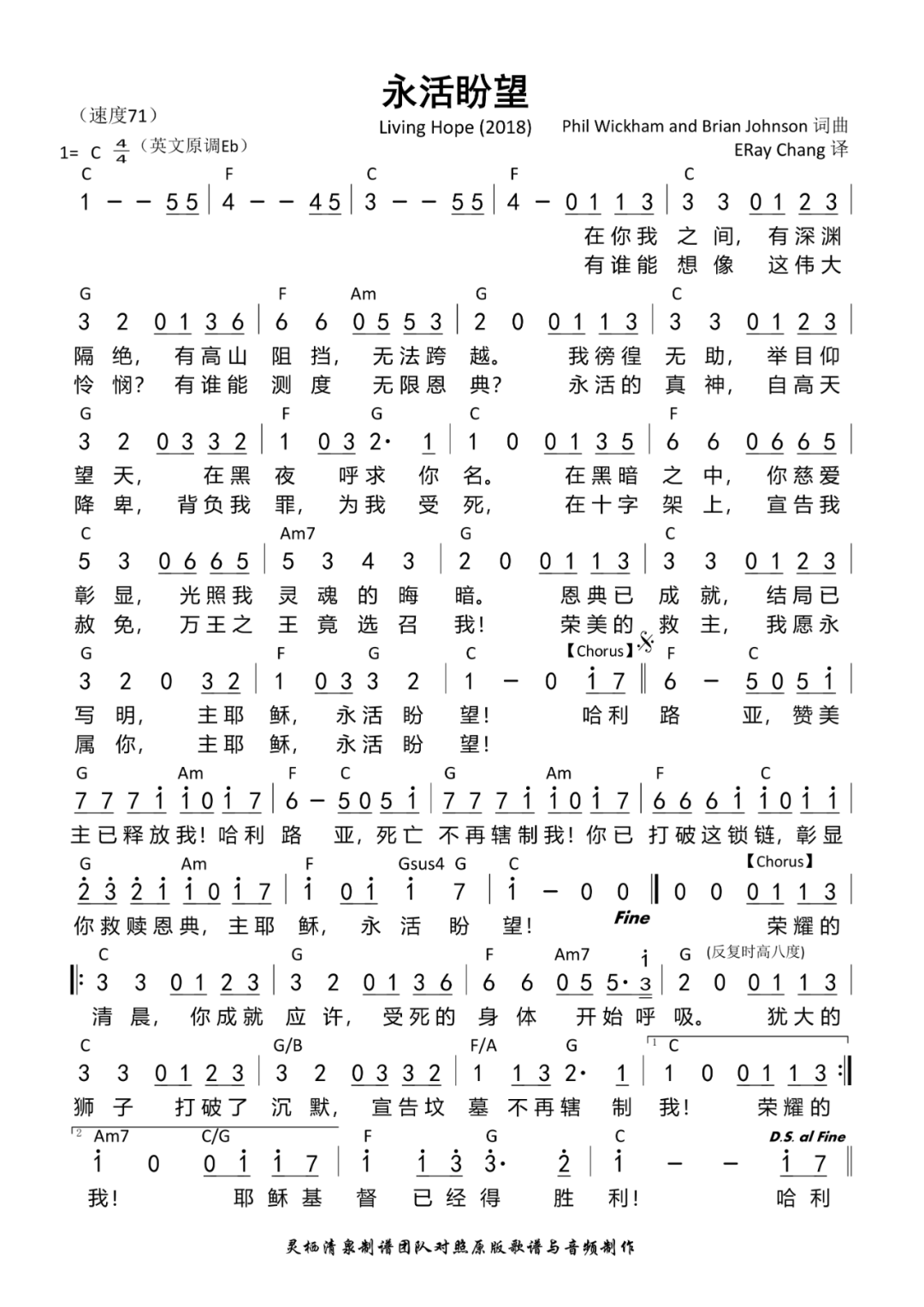 Verse 1: 多大的裂缝 在祢我之间 多高的山崖 无法攀爬 在绝望之中 我抬头仰望 宣告祢名 入黑夜里 穿越黑暗中 祢永存慈爱 掀开遮掩我灵的幕 恩典已成就 结局已写下 主耶稣 我的盼望 Verse 2: 谁能够设想 这伟大怜悯 谁能够领略 无限恩典 永恒的君王 舍弃了荣耀 穿戴我罪 承受羞辱 十架已诉说 我已被赦免 万王之王称我属祂 荣美的救主 我永属于祢 主耶稣 我的盼望 Chorus: 哈利路亚 赞美祂释放我心 哈利路亚 死亡失去了权柄 祢破碎所有枷锁 救赎就在祢名中 主耶稣 我的盼望 Verse 3: 到那日早晨 封密了应许 祢被葬身体 有了气息 在沉寂之中 咆哮的狮子 宣告坟墓不再辖制我 耶稣祢已全然得胜