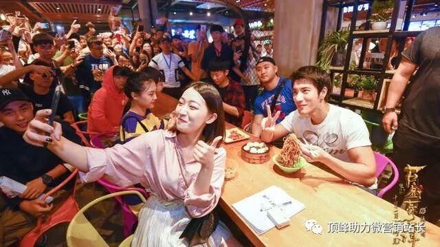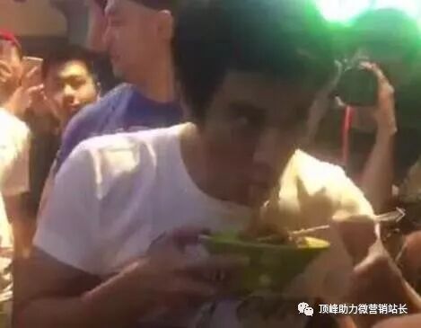 一边吃还一边和粉丝合影,十分亲民和接地气,怪不得红了这么多年。