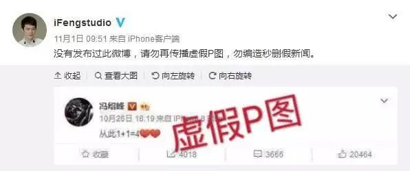 宣布怀孕?这几天网上流传的一张疑似冯绍峰发布的微博截图又掀起一阵猜测热潮,但最终工作室出面辟谣,证实这张图是虚假P图、恶意伪造。赵丽颖怀孕一事仍然虚无缥缈。